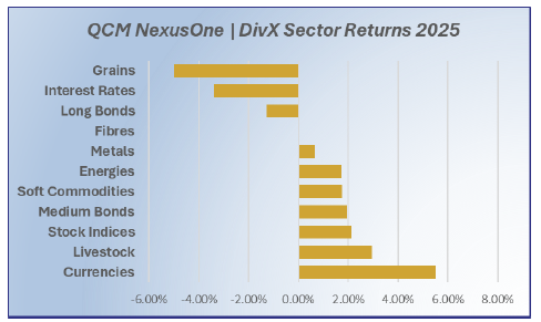 By year-end, markets were already debating the timing and pace of potential policy easing in 2026, against a backdrop of uneven disinflation and ongoing geopolitical noise. This environment of no single dominant macro theme, but plenty of local trends, reversals and cross-asset dispersion – is exactly what NexusOne | DivX was built for.